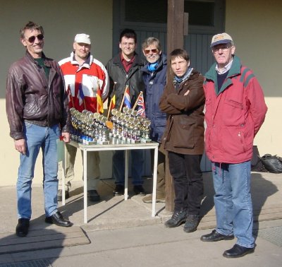 Auch in diesem Jahr waren die Eumel beim Schiessen in Haberloh dabei. Wie in jedem Jahr wurden wir auch diesmal vergattert. Und dann ging's los. Anfangs ziemlich frisch, wurde es noch ein schöner warmer Tag. Und wenn auch der warme Goldregen ausblieb, lieferten wir keine schlechten Ergebnisse ab (zum Teil jedenfalls). Da nicht alle gemeldeten Eumel kommen konnten, waren nur 6 von 8 da. Eine Mannschaft bestand aus 4 Teilnehmern. Nun waren unsere Improvisationskünste gefragt. Da nannte sich Bernhard auf einmal Marco oder Horst. Aufgefallen ist mir, mit falschem Namen schießt man besser. Gemessen haben wir uns in der Pistole, dem Maschinengewehr und dem M 36. Bei letzterem konnte jeder seine Probeschuesse an einem Monitor auswerten. (Wenn das so weiter geht, ist beim nächsten Mal die Laserpistole dabei?! Vielleicht.) In eigener Wertung stand das Bogenschiessen. Gegen eine Spende von 1 Euro haben wir das natürlich auch versucht. Mit beachtlichem Ergebnissen. Während der eine oder andere sich über eine 7, 8 oder 9 freute, hatten einige Mühe, für die 6 Pfeile genug Platz auf der Scheibe zu finden. Und das genau in der 10 !!!!!!!! Das sei an dieser Stelle ein Lob wert.