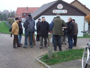 Am 16.11.2008 fand die traditionelle Wanderung nach Bollen zum Eisbeinessen statt. Die EUMEL waren von der Altersturnern/Radfahrgruppe, wie schon in den Jahren zuvor, natürlich wieder zum Mitmachen eingeladen. Es darf an dieser Stelle erwähnt werden, dass von den 30 Teilnehmern 21 EUMEL waren, denn die Trennung zwischen Altersturnern und EUMELN verschwindet immer mehr. ![]() EUMEL abmarschbereit |
