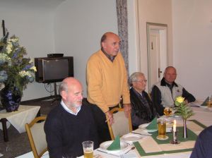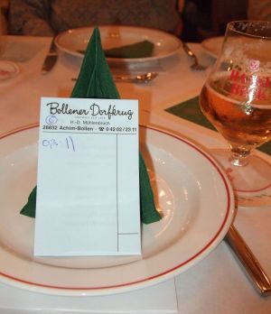 Am Alten Markt trafen sich 15 Wanderer, denen sich in Bierden bzw. Clüverswerder noch 5 weitere anschlossen. Gegen 17:00 Uhr trafen vereinbarungsgemäß im "Bollener Dorfkrug" Wanderer und Nichtwanderer ein, um sich zunächst einmal mit einem kräftigen Schluck Bier wieder "zu stärken". Manni Stecher, als Chef der Alterturner, begrüßte sodann die Anwesenden und dabei ganz besonders seinen Amtsvorgänger Helmut Mirbach. Er freute sich, dass die EUMEL, wie bereits oben erwähnt, auch wieder in großer Zahl an dieser Veranstaltung teilgenommen haben. Aus bisher ungeklärten Gründen ergab sich keine Gelegenheit zu humorvollen Vorträgen, dafür wurden aber endlich wieder einige Lieder gesungen, die zum Teil von anderen anwesenden Gästen kräftig mitgesungen wurden, die entsprechenden Textblätter wurden vorher verteilt. | |||||||