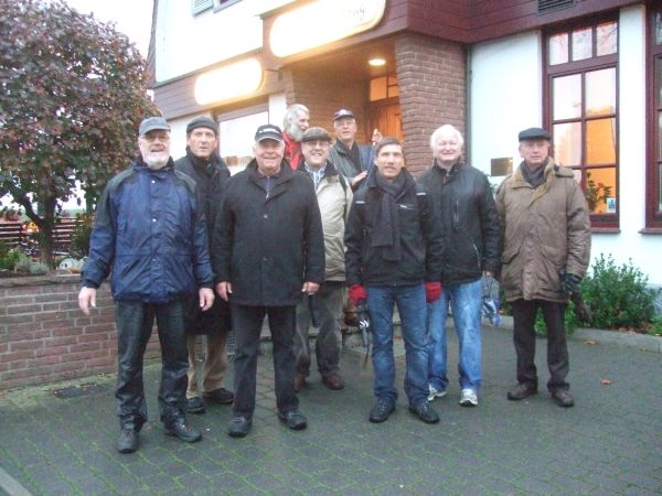 ![]() | Und das berichtet EUMEL-Chef Gerhard Siebke Am 3. November war es wieder so weit. Die Altersturner/Radfahrer hatten eingeladen. Die Mehrheit kommt mittlerweile von Eumeln, was ein bisschen daran liegt, dass ältere Eumel nicht Altersturner werden wollen, sondern bis ins hohe Alter Eumel bleiben. Das hielt insgesamt 31 Teilnehmer nicht davon ab nach Bollen zu kommen. Die 22 Wanderer sind hierbei besonders zu erwähnen, da sie trotz dauerndem Nieselregen zu Fuß anreisten. Zum Glück war kaum Wind, sodass unterm Schirm nur die Schuhe nass wurden und alle in guter Stimmung nach 10 Kilometern das Ziel erreichten. Nach der Begrüßungsansprache von Mannie, mehreren Liedern und ein paar Bieren wurden die Haxen serviert. Diese waren wie immer hervorragend. Es gab nur einen dessen Hunger erst nach Verzehren der 2. Haxe gestillt war. Zudem war für alle noch Wurst und Kasslerfleisch im Angebot. Nach vielen guten Gesprächen und dem Absingen von weiteren Liedern gingen und fuhren alle nach dem schönen Abend wieder nach Hause. |