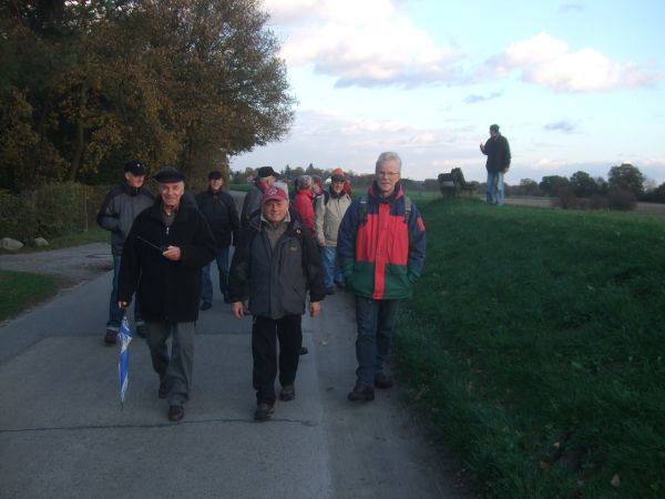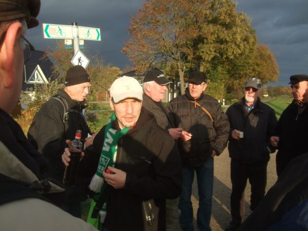 Wie bereits in dem Bericht vom letzten Jahr angekündigt, fand das beliebte Essen „Eisbein mit Sauerkraut“ in diesem Jahr am 9. November statt. Ein solches Essen mit 27 Personen muss leider bereits ein Jahr vorher in unserem Lokal "Hansi Mühlenbruch" in Bollen angemeldet werden, da andernfalls unter Umständen kein Platz reserviert werden kann. Zum Wandern hatten sich bei unserem Organisationschef Manni 19 Altersturner/Radfahrer/EUMEL angemeldet, von denen aber leider nur 16 angetreten waren. Nach dem obligatorischen Bild vor dem Abmarsch übernahm Harry die Wanderführung. Bereits an der Kirche tauchte ein bisher vermisster Mitwanderer auf und in Bierden am Deich wartete noch einer. Die Namen sollen lieber verschwiegen bleiben. Gegen 16:50 wurde das Ziel in Bollen erreicht, wo bereits die Nichtwanderer warteten.