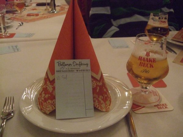 Nachdem auch einige Lieder angestimmt waren und ein paar lustige Döntjes erzählt waren, wurden die Haxen aufgetragen, denn nach dem ersten Bier hatten alle einen entsprechenden Appetit. Die Zubereitung ließ, wie immer, keine Wünsche offen und daher trat Ruhe ein, denn jeder war mit seinem Essen beschäftigt. Es soll auch einen gegeben haben, der eine zweite Haxe in Angriff genommen hat, dann aber nach dem Verzehr der Schwarte aufgeben musste. Für das abschließende Eis mit heißen Kirschen war aber bei allen noch genügend Platz im Magen. Nach dem Verdauungsschluck ging es ans Bezahlen und für die meisten Teilnehmer wurde die vorher organisierte Heimfahrt angetreten. Wie bereits in den Vorjahren ließen es sich neun Teilnehmer nicht nehmen, den Heimweg wieder auf Schuster`s Rappen anzutreten, Respekt, Respekt.