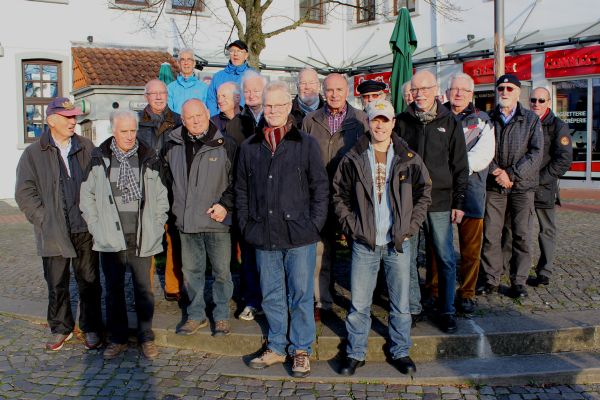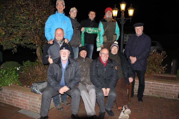 Am 8.11.2014 war es wieder soweit, das seit vielen Jahren bei Altersturnern/Radfahrern und EUMELN beliebte Eisbeinessen in Bollen stand wieder an. Manni als Chef der Radfahrer ist seit seiner "Amtseinführung" auch der Organisator dieser Veranstaltung, die er bekanntlich im letzten Jahr bereits terminiert hatte. 18 Wanderer trafen sich um 15:00 Uhr am Alten Markt, wo das traditionelle Foto gemacht wurde. Unmittelbar nach dem Abmarsch trafen dann noch die beiden "Jung-Eumel" aus der Gerhard-van-der-Poll-Straße ein und konnten sich gerade noch der Wandergruppe anschließen, da diese an dem Kreisel wartete. Harry führte die Gruppe als Wanderführer wieder nach Bollen, wo sie kurz vor 17:00 Uhr eintraf. Einige "Nichtwanderer" waren bereits anwesend und einige von denen trudelten nach und nach auch ein.