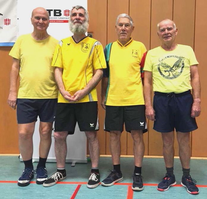 Ende November war es wieder soweit: Der Turnkreis Verden hat in Etelsen 8 Mannschaften aus verschiedenen Vereinen zum Trimmwettkampf der Männer begrüßt. Auf die aus 4 Sportlern bestehende Mannschaft warteten 10 verschiedene Stationen, bei denen die Geschicklichkeit eines jeden Sportlers gefordert wurde, ob es um den Transport von Bällen oder Wattebäuschen mit Essstäbchen ging, Puzzeln, Hindernisparcours…. und noch vieles mehr.