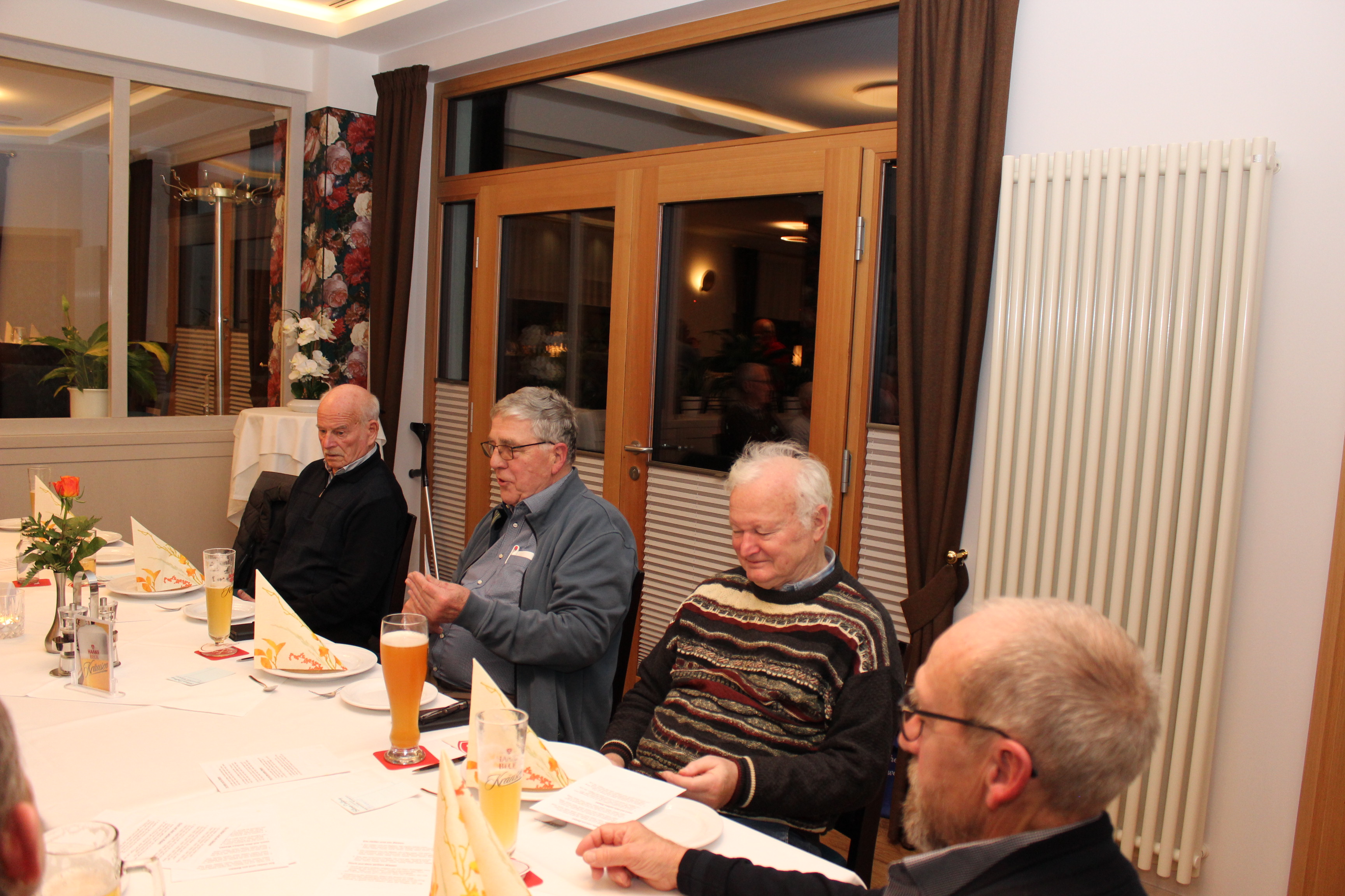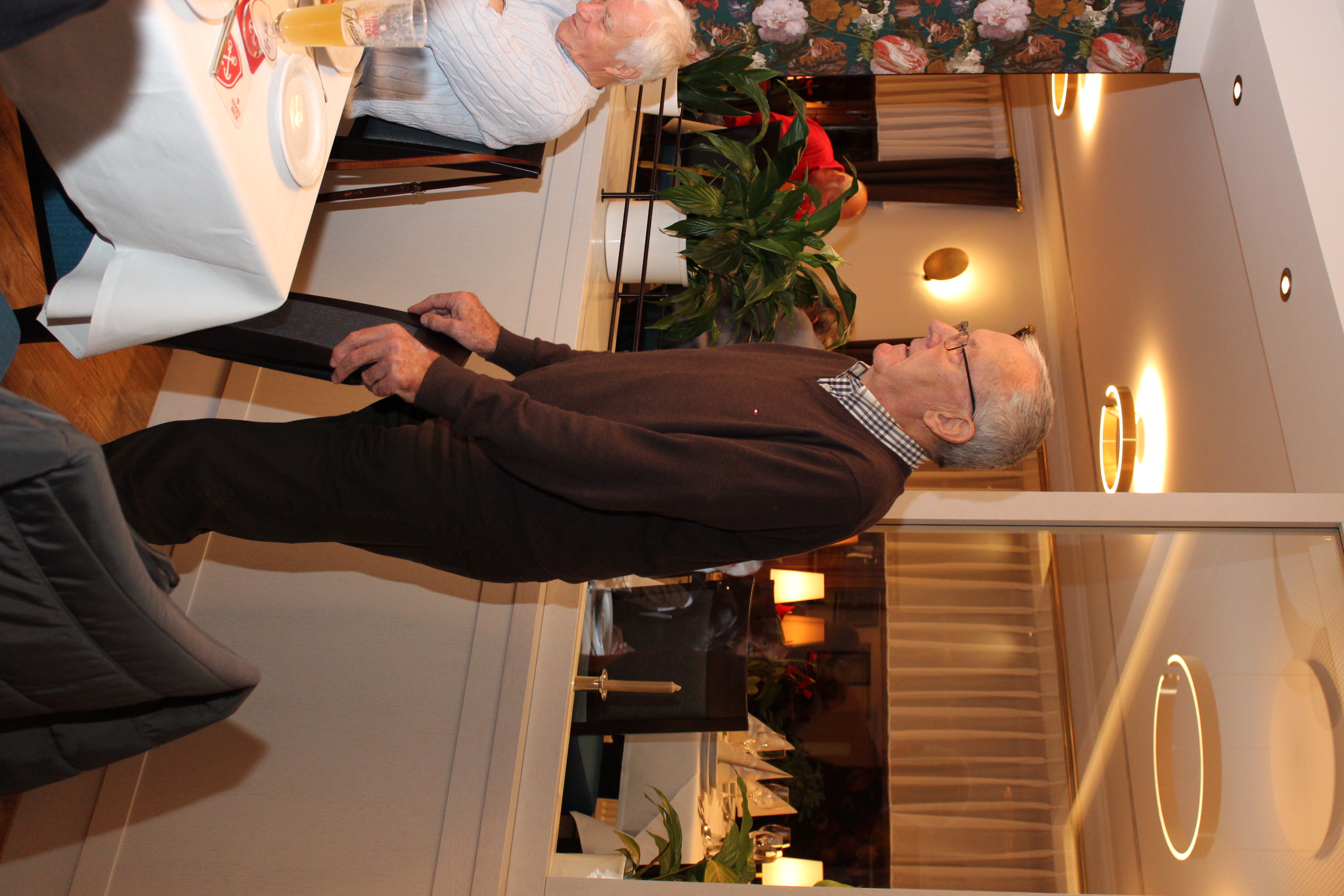 Vor dem Haxenmahl ergriff Horst Kunke das Wort: Er gab einen sehr interessanten geschichtlichen Rückblick auf das Wasserschloss Clüverswerder; er hatte dort während seiner Jugend oftmals seine Freizeit verbracht. Seine Recherchen hatten ergeben, dass das Bauwerk schon um 1350 entstanden war. Horst brachte die Geschichte so interessant an uns heran, dass alle gut zuhörten und keine Langeweile aufkam.