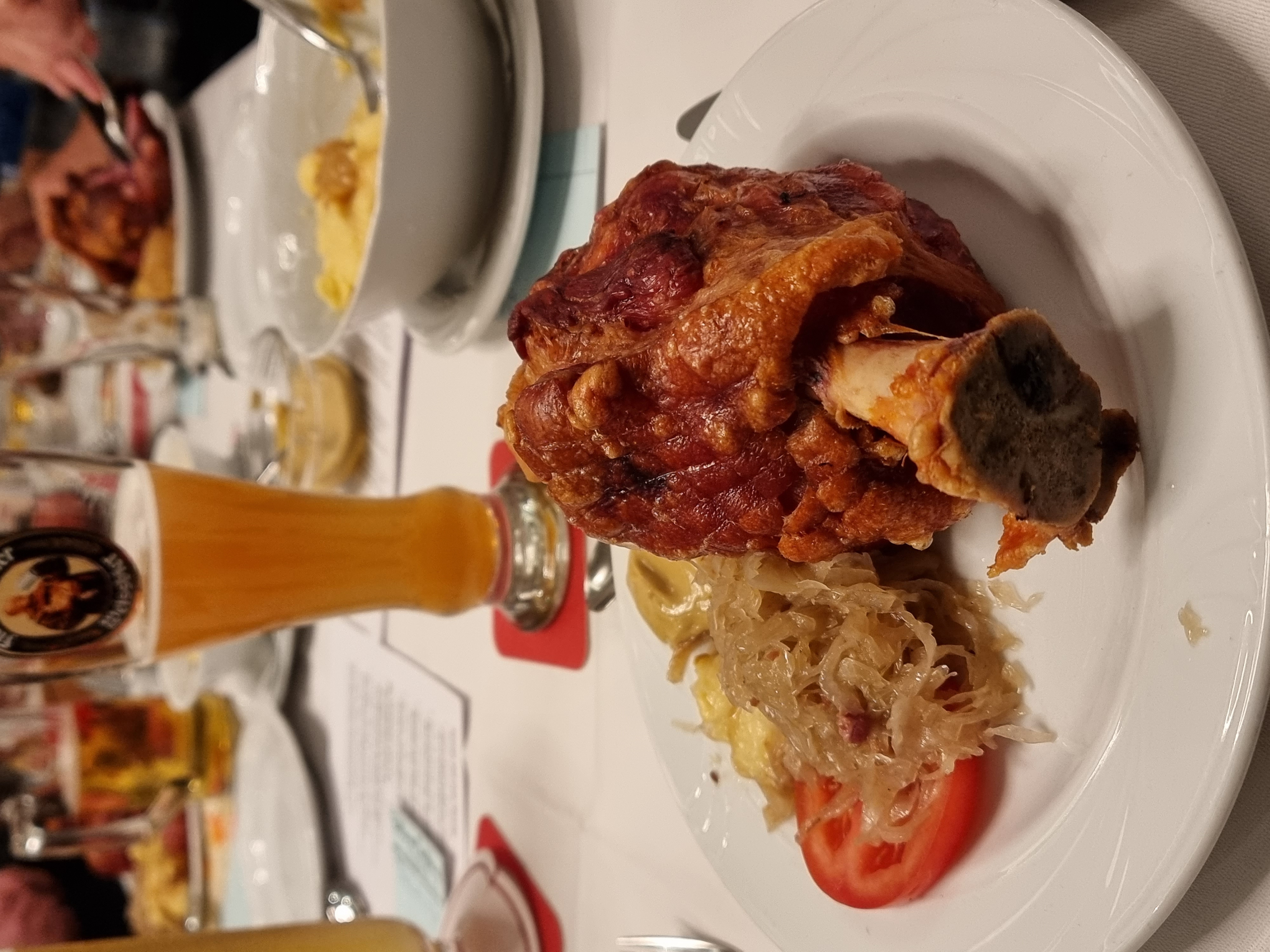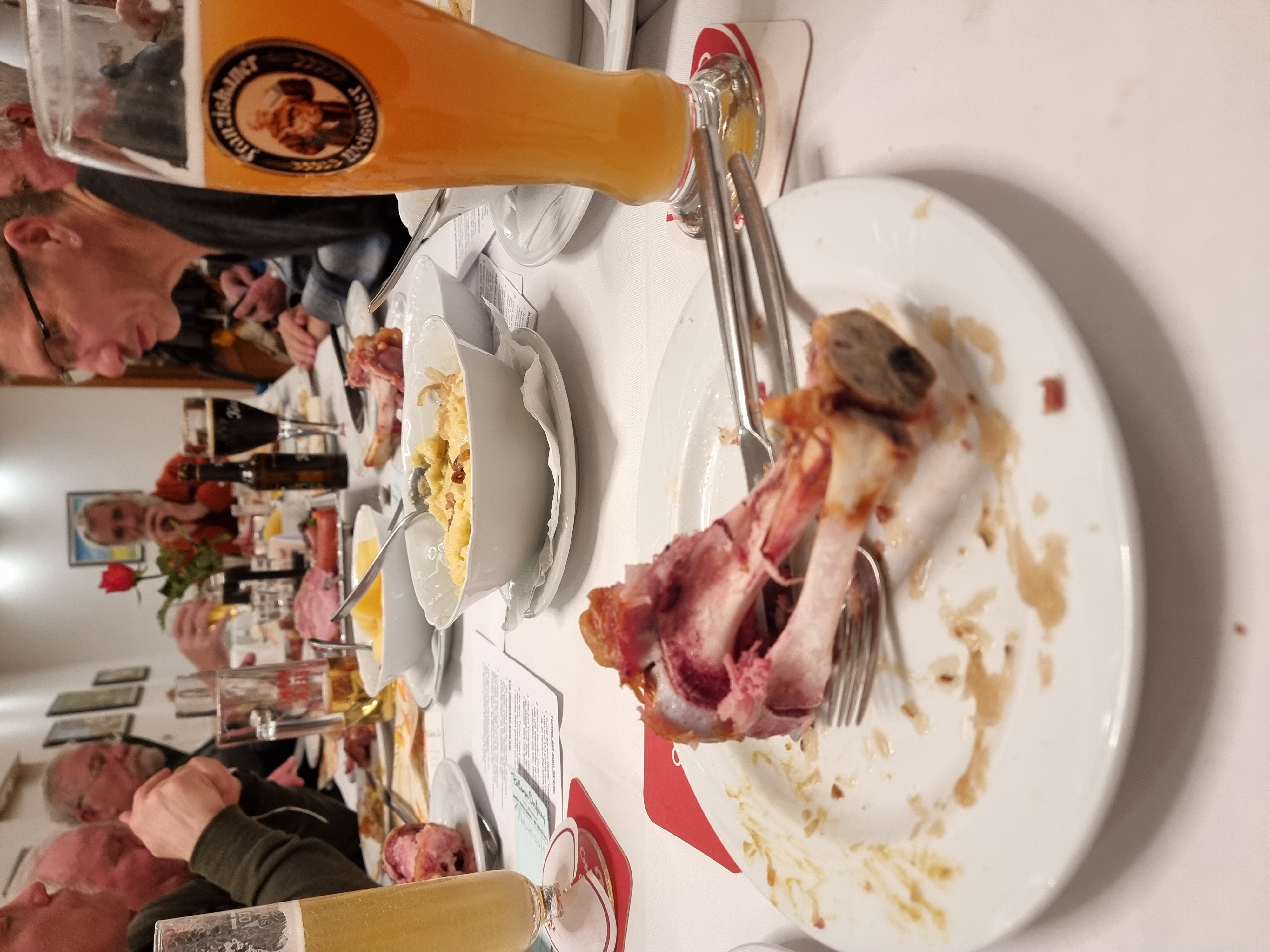 Dann ging unser tolles Haxenessen los; alle genossen es. Zum Abschluss gab es überreichlich Eis und dazu heiße Kirschen. Ich glaube, es blieb niemand hungrig.
