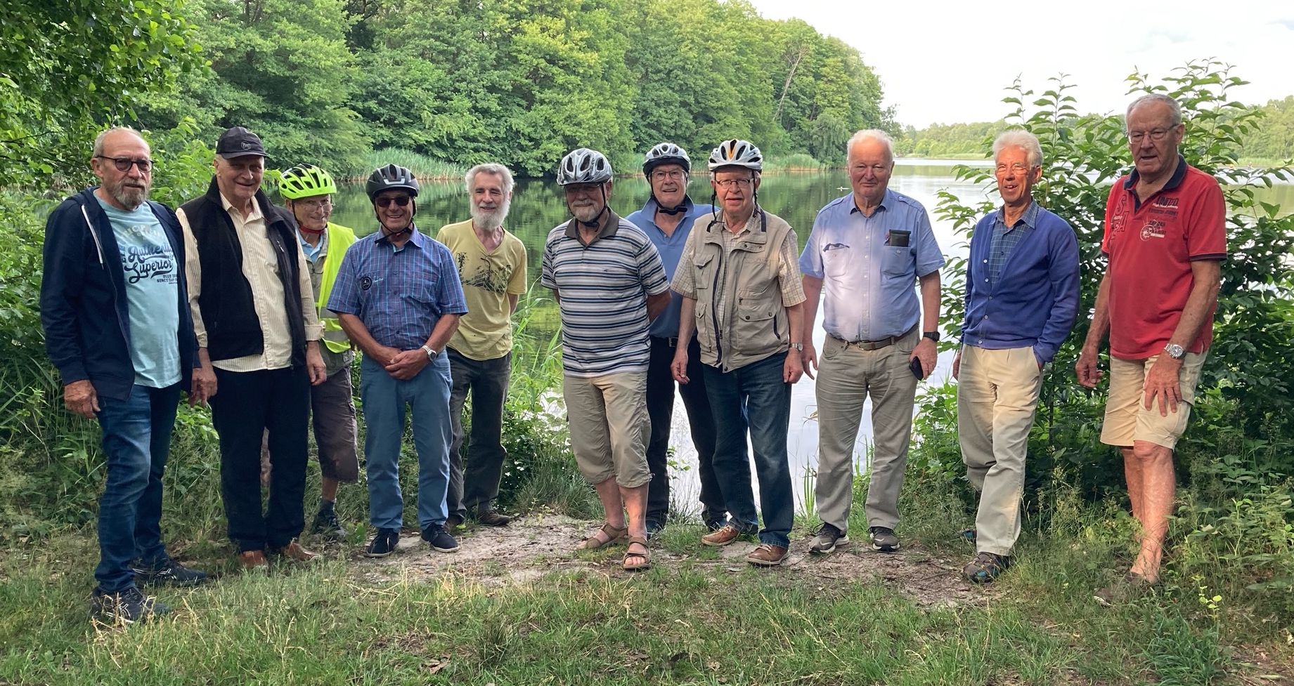 Die Führung der Gruppe hatte Detlef Semela übernommen. So ging es vom Hallenbad Achim aus hin zum Oyter See und weiter bis nach Bierdener Mehren. Dann die große Überraschung: Es erwartete uns ein riesiger gepflegter Garten, gleich nebenan von „Webers See“.