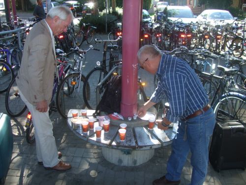 Bis zur Abfahrt des Zuges erfolgte noch ein kleiner Rundgang durch Achim, dabei traf die Gruppe zufällig unseren Bürgermeister, der die Gäste natürlich auch in Achim willkommen hieß. Nun wurde es langsam Zeit, den Weg zum Bahnhof anzutreten. Auf dem Bahnsteig bedankte sich Gerd Siebke nochmals für den Besuch, der wohl für alle Teilnehmer zu einem Erlebnis wurde. Gleichzeitig brachte er zum Ausdruck, dass wir in 2 Jahren, eine Einladung vorausgesetzt, gern wieder nach Bad Sobernheim kommen würden. Auch Gerhard Melcher bedankte sich für die Jedermänner nochmals für die herzliche Aufnahme und kündigte die Einladung in 2 Jahren bereits an. Nach einer herzlichen Verabschiedung auf dem Bahnhof endete dieser Besuch unserer Freunde aus Bad Sobernheim um 12:52 Uhr mit der Abfahrt des Zuges.