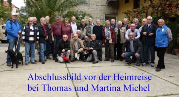 Am Sonntagmorgen ging es dann traditionsgemäß über den Domberg zum Weingut Michel, wo uns Thomas und seine Frau Martina mit gegrillter Wildbratwurst, verschiedenen Salaten und natürlich Wein aus eigenem Anbau bewirteten. Zur Freude der EUMEL war auch Karl-Albert Bamberger anwesend, der "Urvater" unserer Freundschaft zu den Jedermännern. Nachdem Siggi sich bei Michels für die Gastfreundschaft bedankt und uns eine gute Heimreise wünschte, bedankte sich Harry im Namen der EUMEL für das erlebnisreiche Wochenende in Bad Sobernheim und lud die Jedermänner für 2015 nach Achim ein, denn dann begehen wir unser 30jähriges Freundschaftsjubiläum.