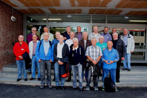 30 Jahre freundschaftliche Begegnungen mit den Jedermännern aus Bad Sobernheim: Vom 18. - 20. September 2015 fand in Achim die 18. Begegnung zwischen den Jedermännern und den EUMELN statt. Mit einer kleinen Panne begann das Treffen, denn laut Ankündigung sollte der Zug am Freitag, d. 18.9.2015 um 13:25 Uhr eintreffen. Eine Stunde vorher erhielt unser Chef Gerd einen Anruf, dass sich die Ankunft um eine Stunde verzögern wird. In einer kleinen telefonischen Information wurden die EUMEL informiert, die vermutlich als "Empfangskomitee" am Bahnhof sein würden. Als der Zug dann gegen 13:33 Uhr eintraf, hatten sich mehrere EUMEL zum Empfang eingefunden. Nach der herzlichen Begrüßung baten Annemarie und Harry zunächst an ihre in aller Eile aufgebaute Kaffee/Bierbar, damit sich die Jedermänner nach der anstrengenden Fahrt erst einmal stärken sollten. Annemarie hatte zusätzlich leckere Schmalzbrote vorbereitet, die mit großem Appetit verzehrt wurden. Dann ging es unter Harrys Führung zur Pension Dohrmann im Philosophenweg, denn dort war für die beiden Nächte die Unterkunft gebucht worden.