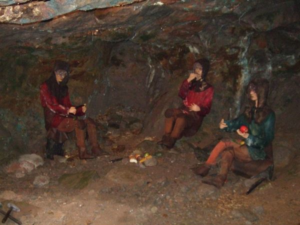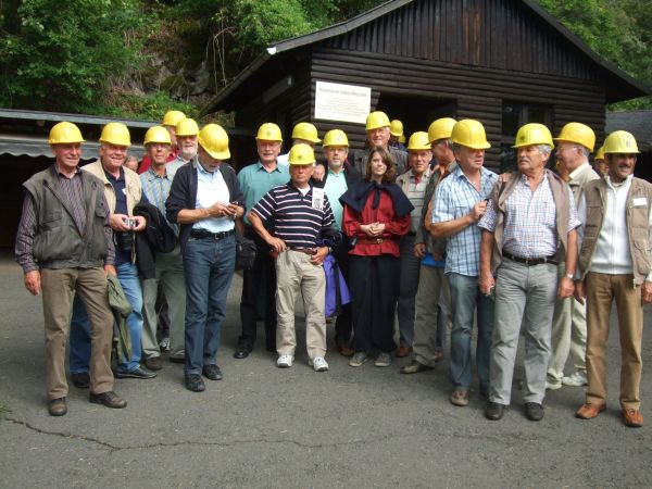 Nach dem Mittagessen im Vereinsheim fuhren wir mit dem Bus nach Fischbach zum Kupferbergwerk zu einer interessanten Führung durch das seit Ende des 18. Jahrhunderts stillgelegte Bergwerk. Jahrhundertelang bauten dort Bergleute im Halbdunkel unter schwierigsten Bedingungen wertvolle Kupfererze ab. Es entstanden riesige bis zu 30 m hohe Hohlräume und weit verzweigte Stollensysteme. Vielfältige Mineralien verzaubern die Decken und Wände und lassen die Felsspalten in vielen Farben schillern.