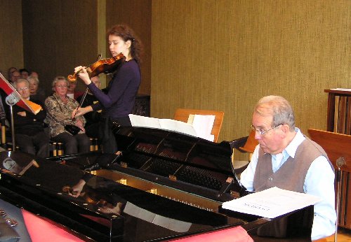 Höhepunkt der Matinee war dann das Konzert mit der jungen Geigerin und früheren Achimer Musikschülerin Miriam Hagen, die von Detlef Wülbers am Flügel begleitet wurde. Sie spielten sehr eindrucksvoll zwei Sätze aus der Sonatine in G-Dur. Das große musikalische Talent von Miriam Hagen blieb wohl kaum einem der Zuhörer verborgen. Ein langanhaltender Beifall belohnte die Interpreten für diesen krönenden Abschluss der Matinee, für deren Gestaltung Gerhard sich im Namen aller Anwesenden herzlich bedankte.