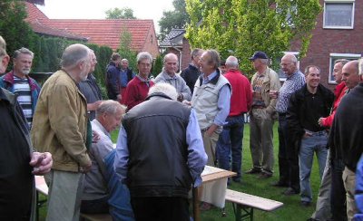 Auch in diesem Jahr fand unsere Radtour wieder am letzten Freitag vor den Sommerferien statt. Am 8.7.2005 versammelten sich 32 EUMEL vor dem Rathaus und wurden von vielen Passanten, die den Auftakt zum Schützenfest miterleben wollten, mit Aufmerksamkeit beachtet. Der Schützenvorsitzende und einige seiner „Untertanen" fragten sogar, ob wir an dem Umzug mit unseren Fahrrädern teilnehmen wollten. Harry führte uns dann durch die Bergstraße, das ehemalige Oellager zum „Anwesen" unseres EUMELS Gerd Kruse, wo wir mit Bier und Heringshäppchen von seiner Frau Gabi hervorragend bewirtet wurden.