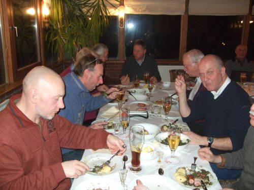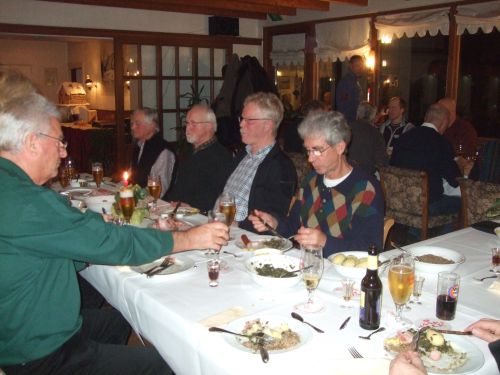 Zum ersten gezapften Bier wurde zur überraschung aller eine Runde "Roter" kredenzt, die der Wirt wohl spendierte, weil wir trotz des Hochwassers das Essen nicht abgesagt hatten. Manni bat danach energisch um Ruhe, da er die anwesenden EUMEL auch im Namen seines Mitorganisators Klaus-Peter nochmals herzlich begrüßte und erwähnte, dass sich diese Veranstaltung nach wie vor großer Beliebtheit erfreut und wünschte allen Teilnehmern einen guten Appetit.