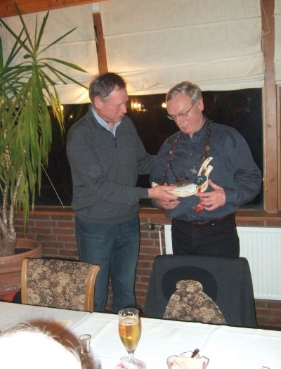 Endlich wurde dann das ersehnte Kohl- und Pinkelgericht aufgetragen und alle EUMEL ließen es sich schmecken. Es wurde einstimmig festgestellt, dass das Essen vorzüglich zubereitet war und ebenso schmeckte, daher wurde noch reichlich Nachschlag genommen. Die letztjährige Majestät Peter Tietjen spendierte die nächste "Runde", da er sechs Tage vorher seinen 71. Geburtstag feierte.