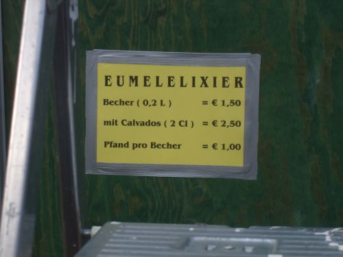 Wenn im "Achimer Kreisblatt" geschrieben wird, dass das angebotene Glühbier eine Konkurrenz für unser EUMELELIXIER ist oder werden könnte, so kann uns das nun wirklich nicht erschüttern.