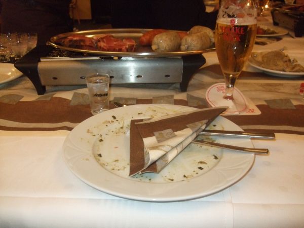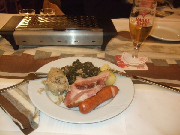 Nun wurde das Essen aufgetragen und es herrschte "Ruhe im Saal", da die EUMEL sehr damit zu tun hatten, das schmackhafte Kohl-Essen, besonders Pinkel, Speck, Kassler und Wurst zu vertilgen. Da Manni noch per E-Mail dazu aufgerufen hatte, doch auch an einige Döntjes und Geschichten zum Vortragen zu denken, lösten sich anschließend die Vortragenden in schneller Reihenfolge ab, somit gab es sehr viel zu lachen.