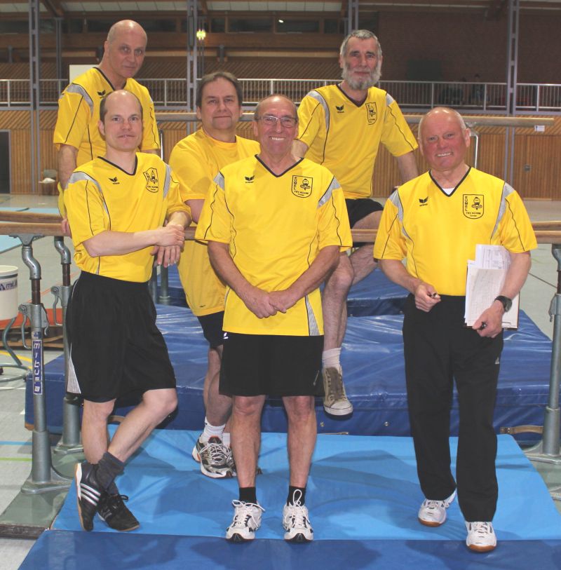 Nachdem Harry als Männerturnwart des Turnkreises Verden die Teilnehmer, Helfer und Kampfrichter begrüßt hatte, bat er zu einer kurzen Aufwärmgymnastik, um der Verletzungsgefahr, besonders bei den zum großen Teil doch schon etwas älteren Teilnehmern, vorzubeugen. Der Wettkampf begann danach in der gewohnten Art, denn die Reihenfolge der zu absolvierenden verschiedenen "Stationen" (Geräteturnen, Leichtathletik und Trimmen) war nicht vorgegeben. Da sich die Teilnehmer aus den vergangenen Wettkämpfen zum größten Teil gut kannten kam auch der Flachs nicht zu kurz, dennoch konnte beobachtet werden, dass die einzelnen Übungen konzentriert und mit Elan geturnt wurden. Nach ca. 1,5 Stunden konnte Harry bereits die Siegerehrung vornehmen, da die Auswertung bereits seit einigen Jahren computergestützt vorgenommen wird. Den 1. Platz errangen in diesem Jahr die Turner des TSV Uesen, den 2. Platz sicherte sich die Mannschaft des TSV Etelsen, die EUMEL belegten wie im letzten Jahr den 3. Platz und der ausrichtende TV Verden kam auf den 4. Platz. Die inoffizielle Einzelwertung gewann erneut unser Harry, der mit seinen 70 Jahren auch die jüngeren Teilnehmer noch hinter sich lassen konnte. Harry wir sind stolz auf dich!