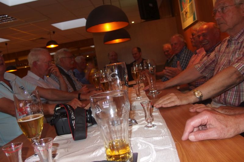 Da für 20:00 Uhr das Abendessen bei ABO bestellt war, ging es dann auf direktem Weg in unser Stammlokal, ein Besuch des inzwischen eröffneten Stadtfestes musste daher ausfallen. Nach der Getränkebestellung trug Fatma das jeweils bestellte Essen auf, wobei es bei der Nennung der EUMEL-Namen zu manch Gelächter Anlass gab, da die Schrift der EUMEL häufig nur schwierig zu lesen war. Nachdem alle gesättigt waren, dankte EUMEL-Chef Gerd unserem Harry für die Organisation der wiederum sehr gelungenen Radtour incl. Vortrag über die Arbeit der Achimer Tafel.