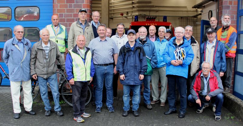 Harry hatte dort eine Führung durch den Hauptbrandmeister Ralf Mühlenstedt organisiert. Während der Besichtigung des Fuhrparks, der aus 6 Fahrzeugen bestand, erzählte Herr Mühlenstedt, dass z.B. das Fahrzeug mit der Drehleiter bei einem Neukauf ca. € 800.000,00 kostet und die beiden Löschfahrzeuge ca. je € 280,000,00. Die freiwillige Feuerwehr Achim hat zurzeit 76 aktive Mitglieder, 26 Senioren (über 62 Jahre), 23 Jugendliche und 20 Kinder, denn Jugendliche und bereits Kinder werden frühzeitig mit den Aufgaben der Feuerwehr vertraut gemacht. Informationen über verschiedenartige Einsätze und Ausrüstung der aktiven Feuerwehrleute schlossen sich an. Nach einem kleinen Umtrunk dankte Harry Herrn Mühlenstedt für seine Bereitschaft zur Führung und die sehr interessanten Ausführungen über die Achimer Feuerwehr.
