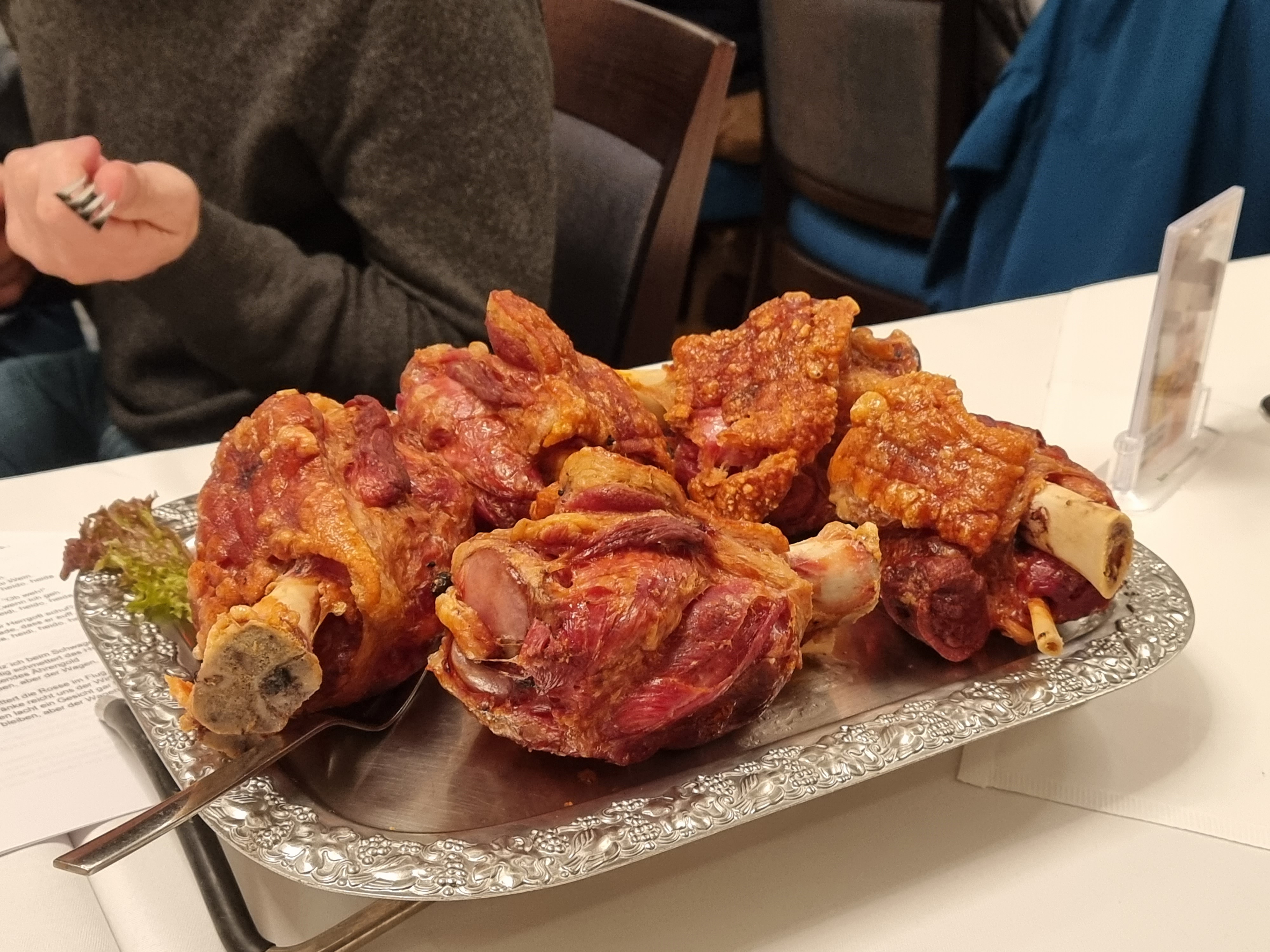 Dann ging unser tolles Haxenessen los; alle genossen es. Zum Abschluss gab es überreichlich Eis und dazu heiße Kirschen. Ich glaube, es blieb niemand hungrig.